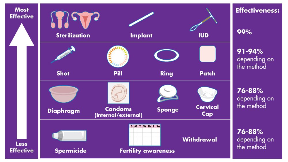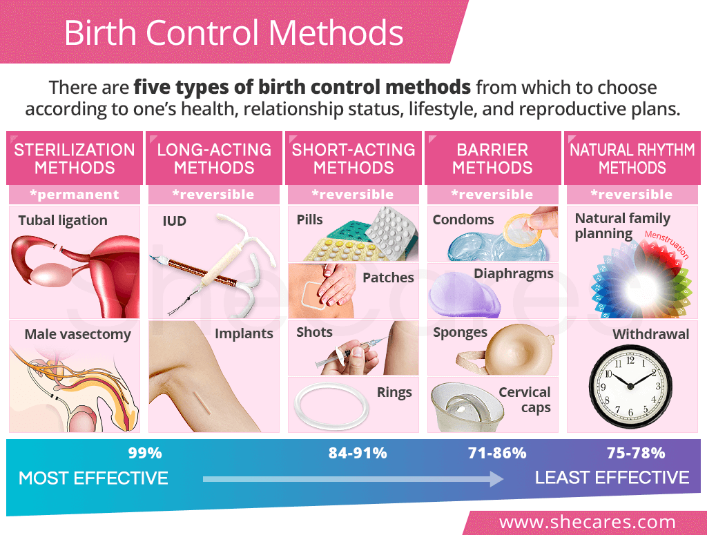 Effectiveness of birth control methods, from sterilization to withdrawal, www.shecares.com.
